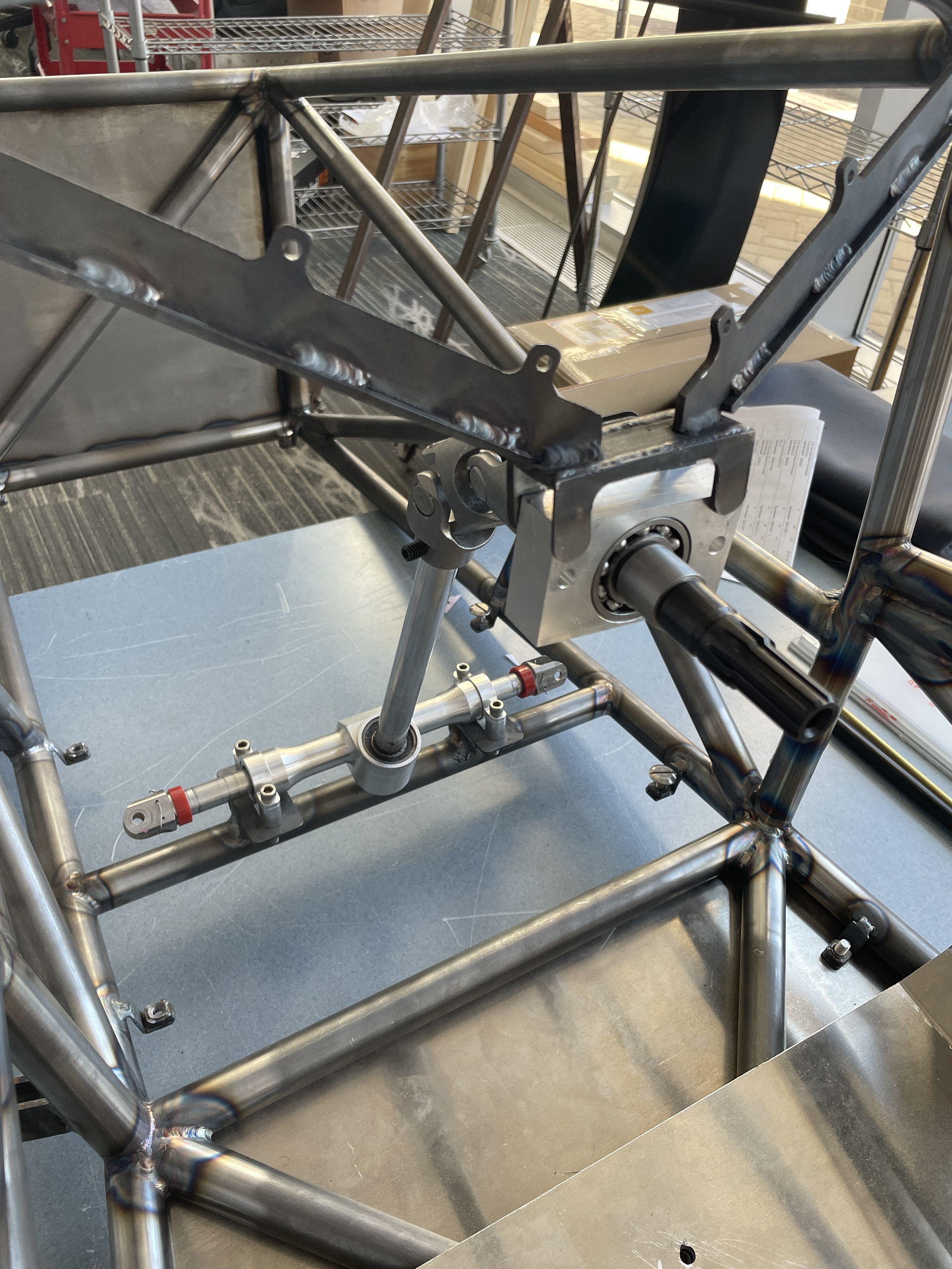 I designed this steering system as part of the Olin Electric Motorsports team. As a member of the cockpit subteam, I was responsible for the design and fabrication of the steering system for the Formula SAE Electric competition. This design featured a double U-joint and a rack and pinion system. The design was constrained by the dimensions and tubes of the chassis, as well as the ergonomics of the driver. I used SOLIDWORKS to design the steering system and fabricated parts using a mill and a lathe.